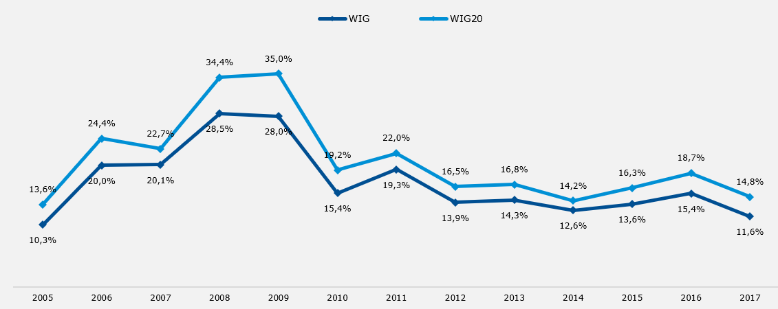 Annual volatility of WIG and WIG20